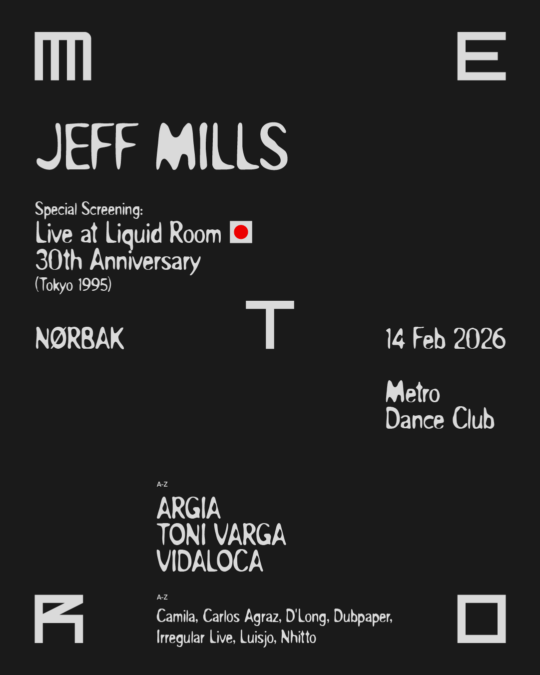 El próximo 14 de febrero, Metro Dance Club vivirá una noche histórica con la actuación de Jeff Mills, auténtica leyenda del techno y pionero del sonido de Detroit. Dentro de su gira mundial “Live at Liquid Room 30th Anniversary”, el artista hará una parada muy especial en Bigastro, donde reinterpretará uno de los directos más influyentes en la historia de la música electrónica.